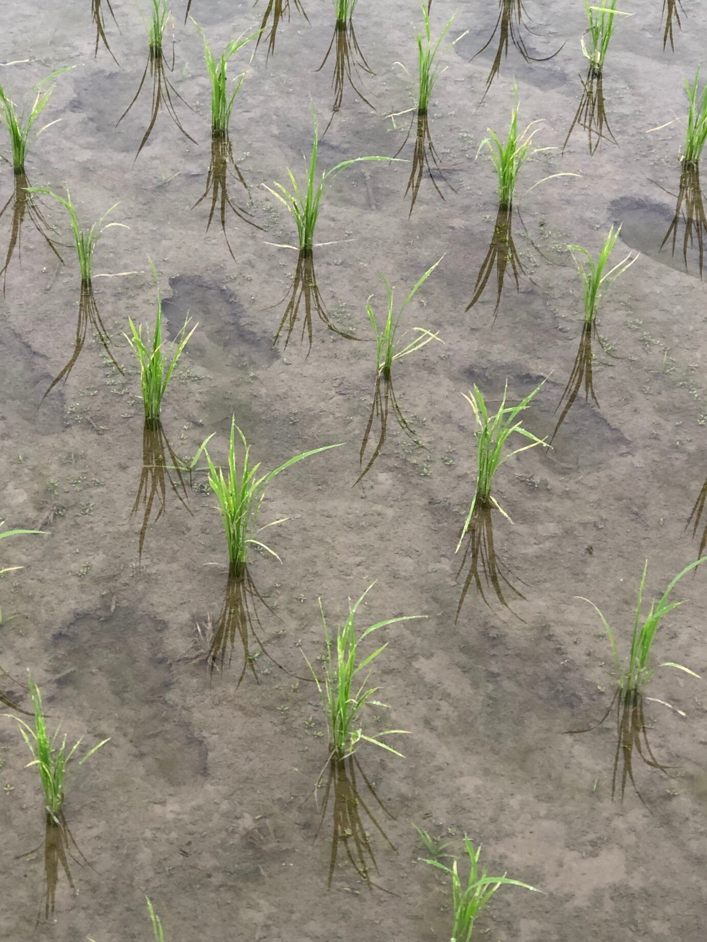 そんな田んぼに、籾を継ぎ育てた苗を、一本一本手で植えて、真夏に泥だらけになりながら何度も田んぼに分け入って草を取り、台風などの自然の脅威に耐えてようやく稲刈りを迎えます。