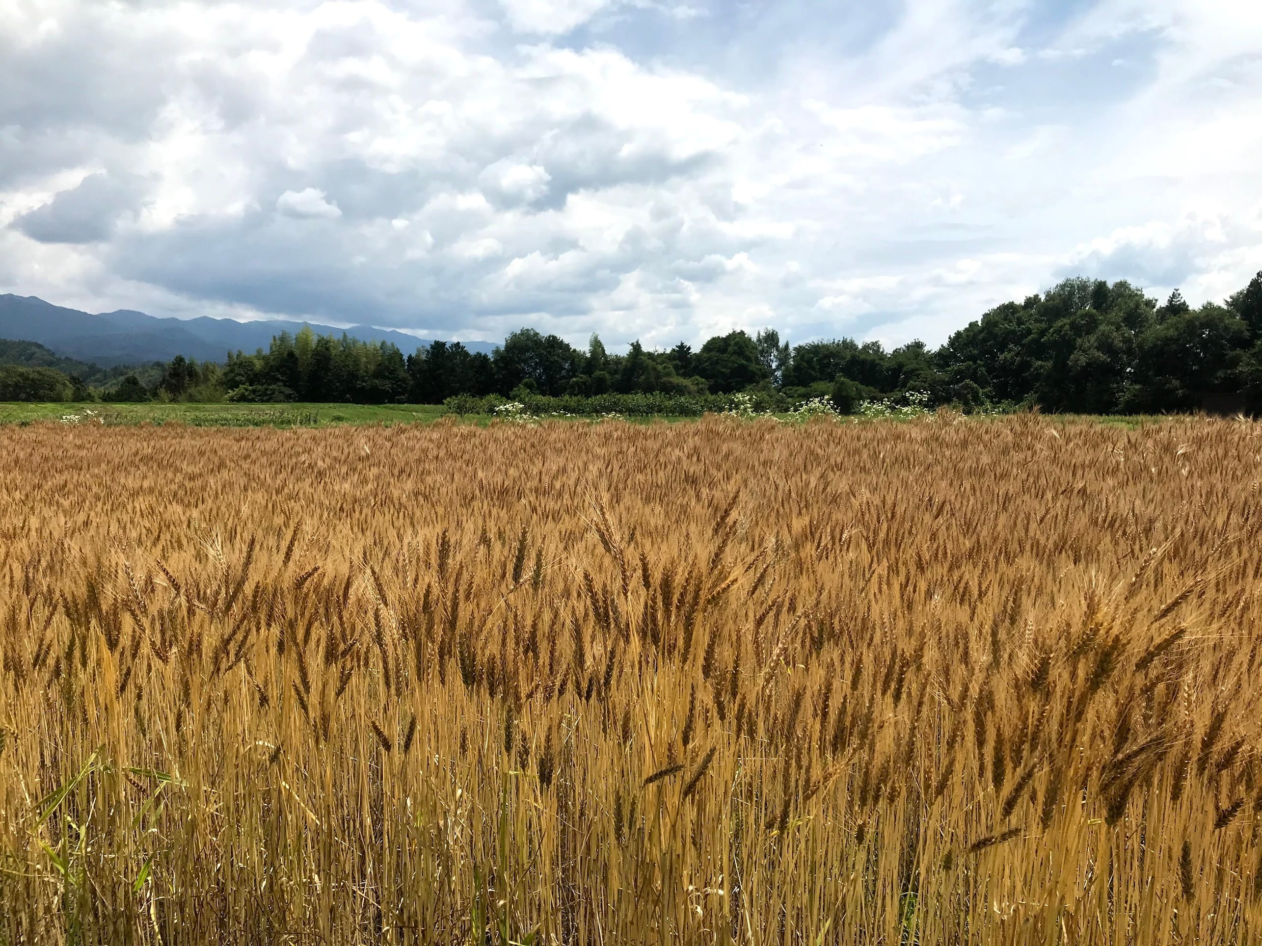 無農薬・無肥料で育てたエンマー小麦を石臼で全粒粉に引いてお届けします。
